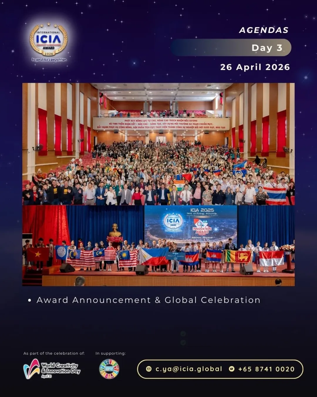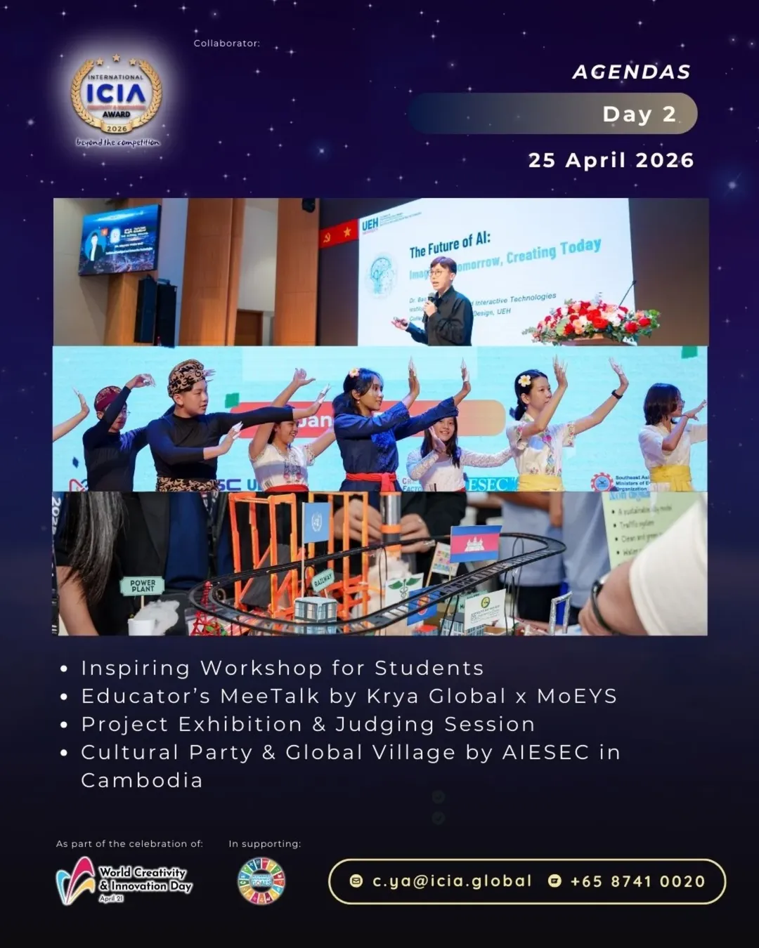 The International Creativity and Innovation Award (ICIA) 2026 Global Round is set to take place in Phnom Penh from 24–26 April 2026, bringing together young innovators from around the world in a dynamic celebration of creativity, collaboration, and impact.