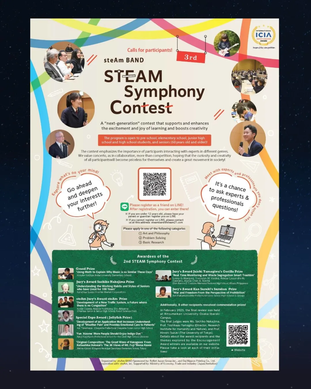 We are pleased to announce that Japan’s Road to ICIA 2026 will be conducted through the STEAM Symphony (Manabi no Kyōsō) Contest, organized by General Incorporated Association steAm BAND.