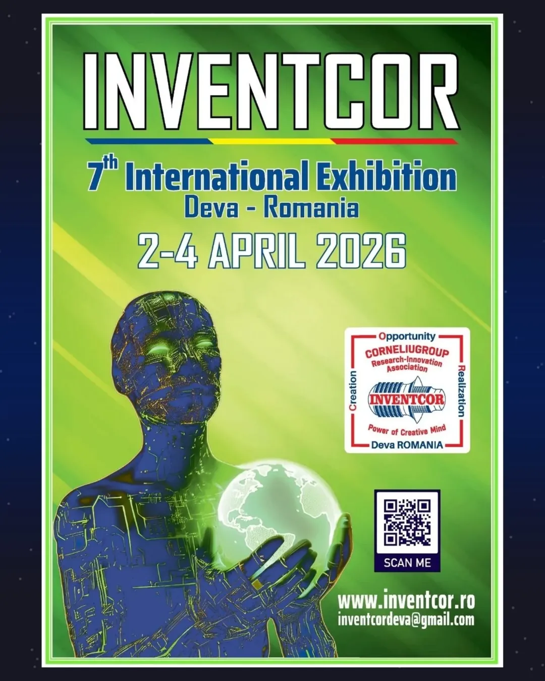Taking place on 2–4 April 2026 in Deva, Romania, INVENTCOR 2026 is a global platform for inventions, research, innovation, and creative education—bringing together inventors, researchers, students, and institutions from around the world. With a strong focus on environmental protection, applied sciences, and creative innovation, this event perfectly aligns with the spirit and values of ICIA.