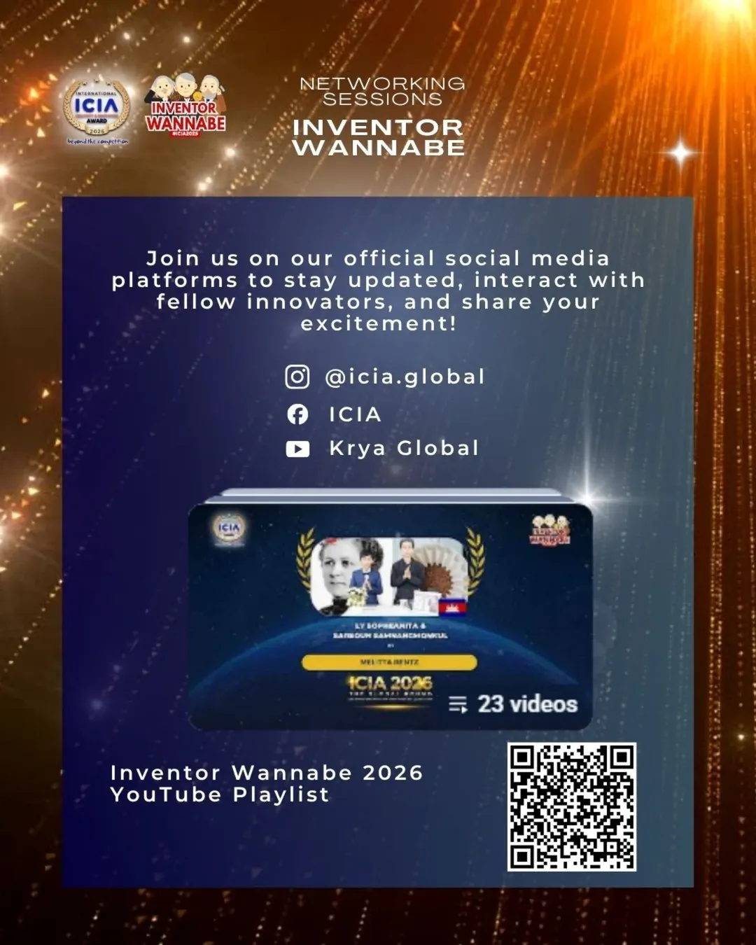 The journey to ICIA 2026 has officially begun—and it starts with the Inventor Wannabe Networking Sessions, where young innovators from around the world take their first step into the world of creativity, invention, and impact.