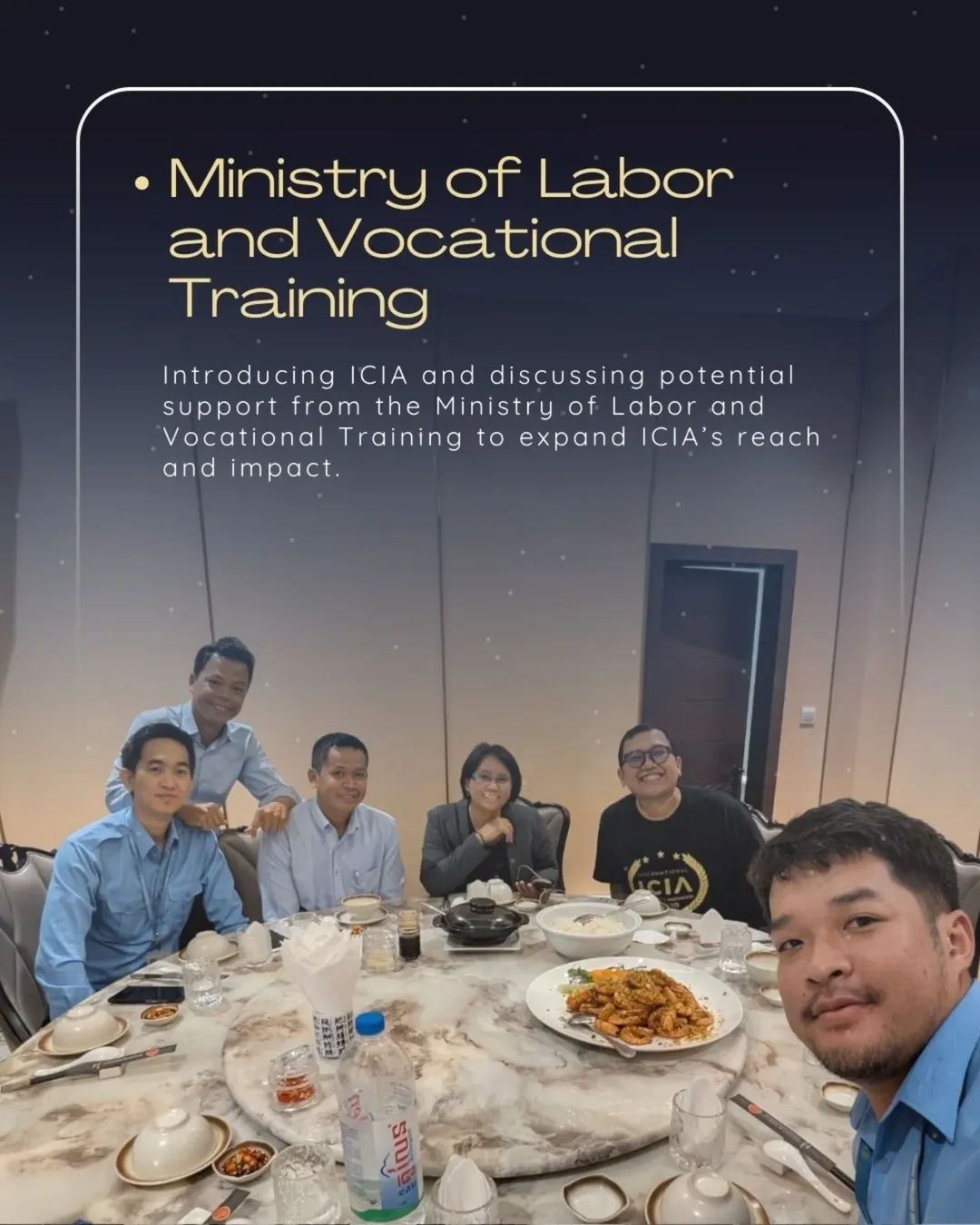 The team also engaged with the Ministry of Labor and Vocational Training Cambodia to introduce ICIA and explore potential collaboration. The conversation highlighted opportunities to expand ICIA’s reach and impact, particularly in bridging education, skills development, and innovation.